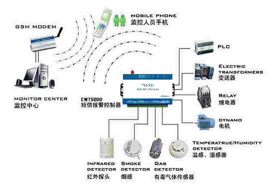 短信報(bào)警器為企業(yè)用戶提供易于上手、功能豐富的設(shè)備報(bào)警與控制解決方案,讓您的手機(jī)變成了被監(jiān)控設(shè)備的遙控器。設(shè)備一旦發(fā)生異常,系統(tǒng)就會及時(shí)給您的手機(jī)發(fā)出短信進(jìn)行報(bào)警,您也可以隨時(shí)發(fā)短信指令查詢設(shè)備當(dāng)前狀態(tài)或者遙控設(shè)備,比如啟動設(shè)備,或者停止設(shè)備等。