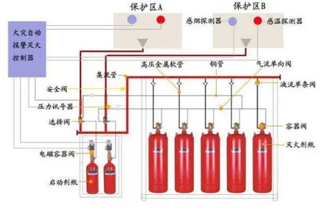 我們都知道,很多單位的機房面積比較小,里面放置了大量昂貴的機械設備,這些器械設備起火的原因大多數都是電路短路、老化、設備保養操作不當等引發的火災,通常我們稱為電氣火災。因此,機房內不能使用水或者其它普通的滅火方式,否則可能會造成設備的損壞等。 由于機房的機構和機房內設備的特性決定了機房使用氣體滅火系統。氣體滅火系統與其它滅火系統相比較,能最大限度減小火災對機房以及機房設備造成的二次傷害,保證機房以及機房設備的完好性。 當前,機房內使用最多的是七氟丙烷和氣溶膠滅火系統。我們常說的氣體滅火系統是指平時滅火劑用液體、液化氣體或氣體狀態存貯在壓力容器內,滅火時以氣體(包括蒸汽、氣霧)的狀態噴射作為滅火介質的滅火系統。并能在防護區空間內形成各方向均一的氣體濃度,而且至少能保持該滅火濃度達到規范規定的浸漬時間,實現撲滅該防護區的空間、立體火災。系統包括貯存容器、容器閥、選擇閥、液體單向閥、噴嘴和閥驅動裝置組成。 氣體滅火系統的工作流程是指當機房內指定防護區出現火災情況時,火災探測器首先發出警報,消防控制中心接到火災信號后,將會立刻啟動聯動裝置,打開氣瓶的瓶頭閥,利用氣瓶中的高壓氮氣將容器閥打開,噴出滅火劑進行滅火。 氣體滅火系統滅火效率高、速度快;對環境無毒無害無污染,對人體無害,最大限度保護機房環境和設備,屬于綠色環保產品;并且使用前的滅火劑為固液態,防止泄露,防止揮發,易保存;并且安裝空間小,非常適合機房這種重要的地方,最大限度保護機房和動力設備的完整性。