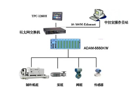 6、制冷系統監控 樓宇的制冷主要由空調系統與新風機系統提供冷源,它由制冷機組、冷卻水循環泵、冷卻塔、冷凍水循環泵、補水泵及電動蝶閥等組成。系統相互配合實現溫、濕度調節、預定時間表和自動啟停控制。