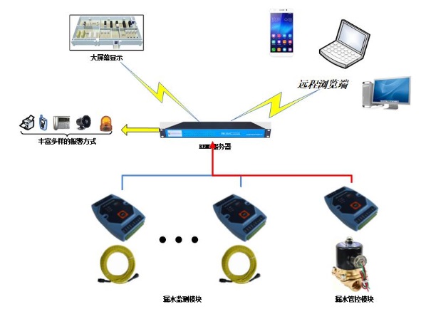 漏水檢測系統指的是檢測機房、數據中心、檔案室、倉庫、酒庫等地方出現漏水或漏液事故發生的綜合性管理系統,又稱漏水報警系統或漏液檢測系統。 【檢測地點】 1)機房、庫房等室內天花板、地板、墻壁、門窗等滲水。 2)供暖供冷輸水管道、生活用水、工業用水、消防水管等的漏水。 3)可檢測空調、排風設備等設備發生的漏水。 4)智能樓宇等的電梯井出現裂縫漏水。 5)地下車庫因雨量大發生漏水。