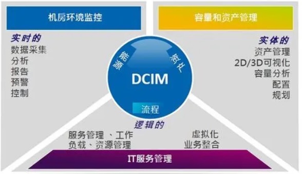 一、DCIM管理框架 DCIM指的是數(shù)據(jù)中心基礎(chǔ)設(shè)施管理。數(shù)據(jù)中心基礎(chǔ)設(shè)施管理能夠?qū)?shù)據(jù)中心的信息技術(shù)設(shè)備及基礎(chǔ)設(shè)施進(jìn)行實(shí)時(shí)監(jiān)測(cè)、控制和管理,它的出現(xiàn)促成了數(shù)據(jù)中心中信息技術(shù)和設(shè)施管理的總和集成,不管在管理形式、技術(shù)方法還是管理范疇以及應(yīng)用上都發(fā)生了質(zhì)的變化,對(duì)數(shù)據(jù)中心有效的綜合管理具有積極的作用,因此成為了數(shù)據(jù)中心管理的主流趨勢(shì)。 DCIM的框架結(jié)構(gòu)可從物理框架、功能框架以及邏輯框架來解釋。 DCIM的物理框架由按DCIM涉及的主要類別和主要作用、功能、內(nèi)容或?qū)ο筮M(jìn)行劃分。DCIM的物理框架劃分為5個(gè)層次。分別為基礎(chǔ)設(shè)施現(xiàn)場(chǎng)層、網(wǎng)絡(luò)傳輸控制層、管理中心設(shè)備層、綜合管理軟件層及人力資源文檔層。 DCIM功能框架是數(shù)據(jù)中心基礎(chǔ)設(shè)施管理核心功能的組成與體現(xiàn),DCIM系統(tǒng)框架按照核心功能模塊的維度可分為:資產(chǎn)管理、容量管理、能源管理、場(chǎng)地設(shè)施管理、連接管理、變更管理等。同時(shí)指的一提的是,運(yùn)維流程和可視化工具是管理的基礎(chǔ)與手段。 DCIM的邏輯框架由DCIM所涉及的三個(gè)專業(yè)領(lǐng)域組成,分別是基于“數(shù)據(jù)中心監(jiān)控系統(tǒng)”的物理基礎(chǔ)設(shè)施數(shù)據(jù)采集及分析;基于“數(shù)據(jù)中心基礎(chǔ)設(shè)施管理”的綜合功能模塊,資源、資產(chǎn)、容量、連接、性能和可視化管理工具;基于“數(shù)據(jù)中心運(yùn)維管理”的運(yùn)維業(yè)務(wù)管理的流程與規(guī)則。