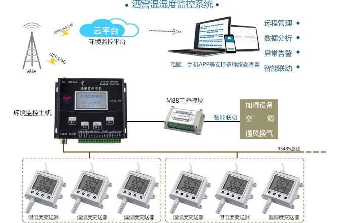 二、酒庫溫濕度監(jiān)控系統(tǒng)的優(yōu)點 (1)軟件登陸界面為窗口化,簡易操作,明了讀取。 (2)具有自動控制和人工控制外部設(shè)備啟動與關(guān)閉等多種功能。 (3)可通過內(nèi)部區(qū)域網(wǎng)查看每個酒庫的所有采集數(shù)據(jù)。 (4)溫濕度監(jiān)控系統(tǒng)通常留有系統(tǒng)擴(kuò)展功能,簡易、方便擴(kuò)展。 (5)酒庫溫濕度監(jiān)控系統(tǒng)占地面積小,方便安裝。 (6)使用靈活,在信號覆蓋區(qū)域內(nèi)任何一個位置的設(shè)備都可以接入網(wǎng)絡(luò)并進(jìn)行數(shù)據(jù)傳輸。