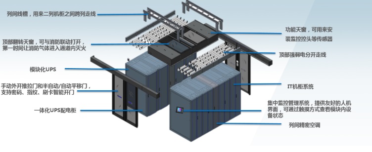 二、一體化機(jī)房的特色 (1)安全可靠 在設(shè)計(jì)、生產(chǎn)、制造中,一切遵循國內(nèi)、國外出產(chǎn)統(tǒng)一標(biāo)準(zhǔn),在技術(shù)上、工藝流程上保持統(tǒng)一,使設(shè)備能夠?qū)崿F(xiàn)匹配,做到各個(gè)環(huán)節(jié)層層把控。 (2)高效節(jié)能 采用機(jī)架式空調(diào)制冷,封閉制冷空間實(shí)現(xiàn)就近精確制冷,極大的提升了制冷效率,與傳統(tǒng)機(jī)房相比可節(jié)能25%以上,UPS采用1+1冗余設(shè)計(jì),實(shí)現(xiàn)高效節(jié)能,響應(yīng)國家節(jié)能減排口號(hào)。 (3)簡單快速 模塊化設(shè)計(jì),插拔式維護(hù),接口、設(shè)備等安裝及維護(hù)簡單省時(shí),機(jī)房無需特殊裝修處理,設(shè)備即到即用,安裝調(diào)試周期僅需2-3周。 (4)智能管理