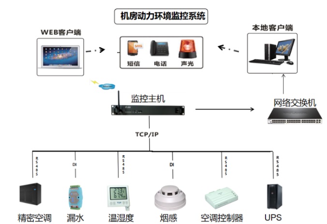 一般來說,機房監控系統可分為機房動力監控子系統以及機房環境監控子系統,其中機房環境監控子系統利用各類新型傳感技術、物聯網技術和計算機技術等高科技技術,實現對機房環境包括溫度、濕度、水浸、紅外、煙霧、門禁等的監控與管理。 機房環境監控系統監控子系統包括: