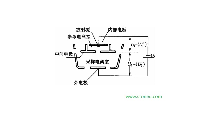 二、單源式離子式煙探測器 也被稱為單源雙室離子感煙探測器,其工作原理和雙源雙室離子式煙探測器一樣,但是結構完全不同,該類傳感器利用一個