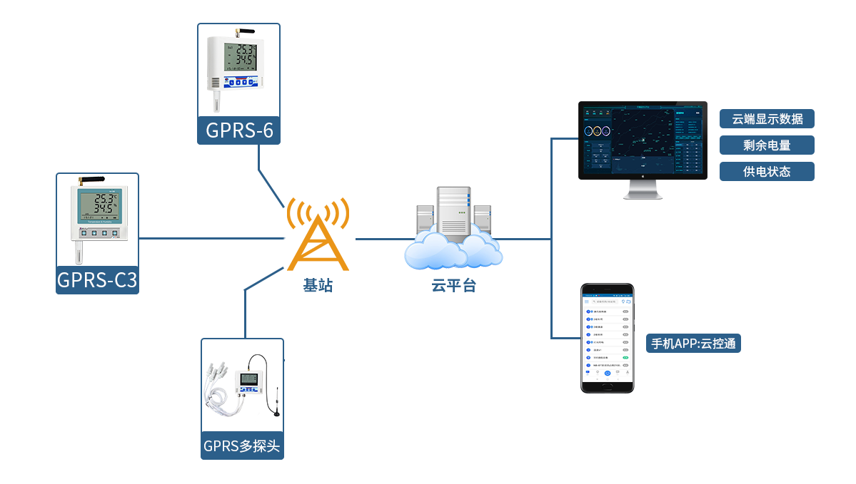 無線GPRS溫濕度監控系統是一種基于GPRS數據傳輸技術和無線通信技術的溫濕度監測和數據記錄系統,簡單的說就是一種用于監測環境溫度和濕度的設備,該系統通過內置的溫濕度傳感器和無線通訊模塊將數據傳輸到云端,并可通過手機 APP 或網頁進行實時監測和數據分析,通過isP-CMS主系統實時地監測和記錄被監控環境的溫度和濕度狀況,用戶可以通過客戶端軟件實時地、遠程地查看和管理環境數據。 因為無線、遠程、實時、便攜的優點,無線GPRS溫濕度監控系統被廣泛應用在各類物資倉儲、生產車間和實驗室等需要嚴格控制溫濕度的場所,如醫藥、食品、化學、電子、制藥等產業,尤其是在冷鏈物流、食品保鮮和生產環境監控方面具有獨特的應用優勢。 無線 GPRS 溫濕度監控系統通常由以下幾個部分組成: 溫濕度傳感器(STU-TH485):安放在需要監測的地方,用于實時獲取環境的溫度和濕度等數據。 網關:將傳感器采集到的數據通過無線 GPRS 技術傳輸到云端。 云平臺:接收并處理傳感器上傳的數據,用戶可通過手機 APP 或網頁進行實時監測和數據分析。 報警系統:根據用戶設定的閾值,當溫濕度超過預設范圍時,會發出預警信息通知用戶。 這種溫濕度監控系統能夠幫助用戶在需要時及時調節環境溫濕度,通過建立數據監測系統和定時提醒機制,利用ET-2101聲光報警模塊、STU-M1206B短信報警模塊、ISP-CMS-P郵件模塊等報警模塊對可能存在的儲物品溫度異常進行預警,并且定位溫度、濕度異常的具體時段和時間,幫助企業實現風險預警和生產控制,大大提高了生產效率和產品質量。