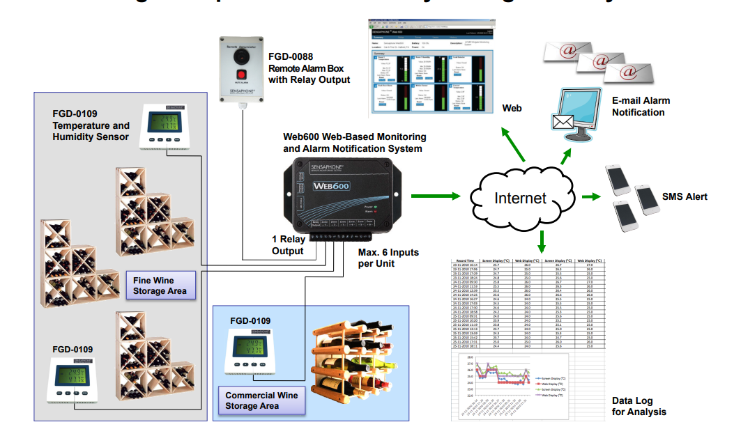 Sensaphone WEB600是一款以結構緊湊的嵌入式控制器為主的網絡型環境監控系統,可與溫濕度傳感器、漏水傳感器等設備連接。同時它集成了控制、監視、遠程管理、記錄數據日志、報警、時間計劃表以及支持互聯網連接和Web網頁服務的網絡管理功能,具有完全獨立,物美價廉,易于使用等優點。 1、WEB600 的技術特性 (1)工作溫度范圍:0℃ ~ 50℃(30℉ ~ 122℉),無凝露。 存儲溫度范圍:0℃ ~ 60℃(32℉ ~ 140℉),無凝露。 (2)NPB-PWR-H—可選:24V AC/DC電源模塊,可導軌安裝。 (3)尺寸:140x83x32mm (4)報警指示燈:包括報警狀態指示燈;電源狀態指示燈;以太網鏈路活動指示燈三個指示燈。 (5)可儲存32,000條(包括日期和時間)記錄。 (6)端口:以太網10/100Base-T。 2、WEB600 主要作用 (1)監測功能:可與溫濕度傳感器、漏水傳感器、空氣檢測器等設備相連,實時對環境和設備進行監測。 (2)報警通知:當單元檢測到傳感器狀態超出正常范圍時,將立即通知8個用戶,發送電子郵件。 (3)歷史查詢:通過內置的網頁查看單元實時狀況和歷史記錄,同時也可以方便地配置。 (4)配置:通過內置的網頁查看單元實時狀況和歷史記錄,同時也可以方便地配置。 (5)緊急自救功能:通過添加可選電池備份模塊,Web600可以監測電源故障,并在斷電時保持運行兩個完整小時,實時緊急自救。 總之,WEB600是小型設施、遠程站點以及用于大型設施的分布控制與監控的理想選擇,廣泛用于監控機房、倉庫、空調房、智能樓宇、智慧學校、智慧醫院、數據中心等敏感的區域。