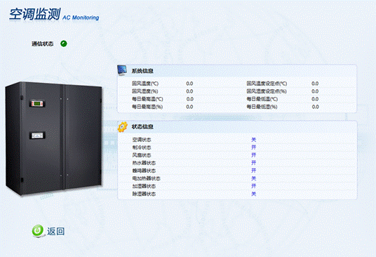1、精密空調(diào):監(jiān)測回風(fēng)溫度/濕度等參數(shù),壓縮機、風(fēng)機、冷凝器、加熱器、加濕器、去濕器等部件的狀態(tài),控制空調(diào)的啟停,調(diào)節(jié)溫度和濕度。