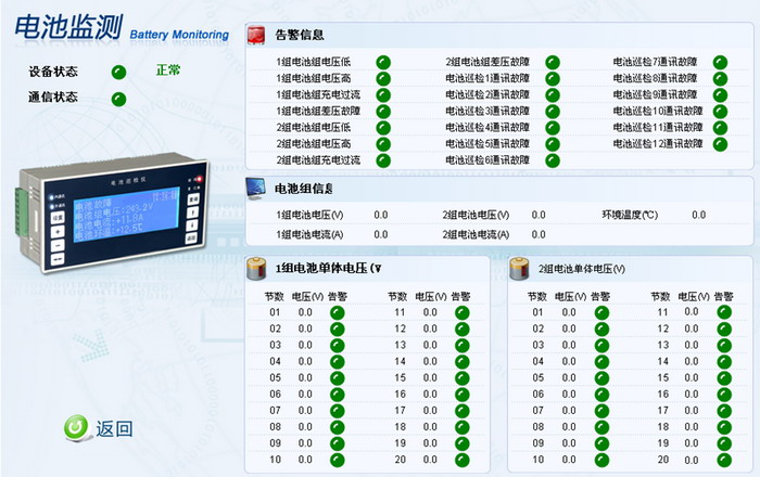 5、直流電源:監測輸入市電狀態,各部件的狀態及參數,監測蓄電池組的電壓、電流、溫度、容量等參數。