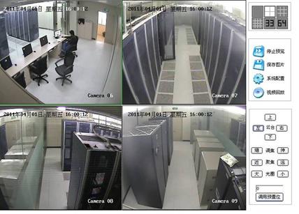 2、視頻圖像系統(tǒng):圖像監(jiān)控采用視頻組態(tài)的概念,將各通道的圖像以控件組態(tài)的方式隨意插入某個(gè)界面。對(duì)于大型的監(jiān)控系統(tǒng)而言,以電子地圖的方式來集中管理各個(gè)場(chǎng)地的圖像界面,十分方便。由于本系統(tǒng)將動(dòng)力環(huán)境監(jiān)控和圖像監(jiān)控合二為一,因而可以隨意實(shí)現(xiàn)動(dòng)力環(huán)境與圖像的聯(lián)動(dòng)控制。一旦有異常事件發(fā)生,監(jiān)控系統(tǒng)自動(dòng)彈出現(xiàn)場(chǎng)圖像畫面,即時(shí)錄像并作報(bào)警提示和處理。